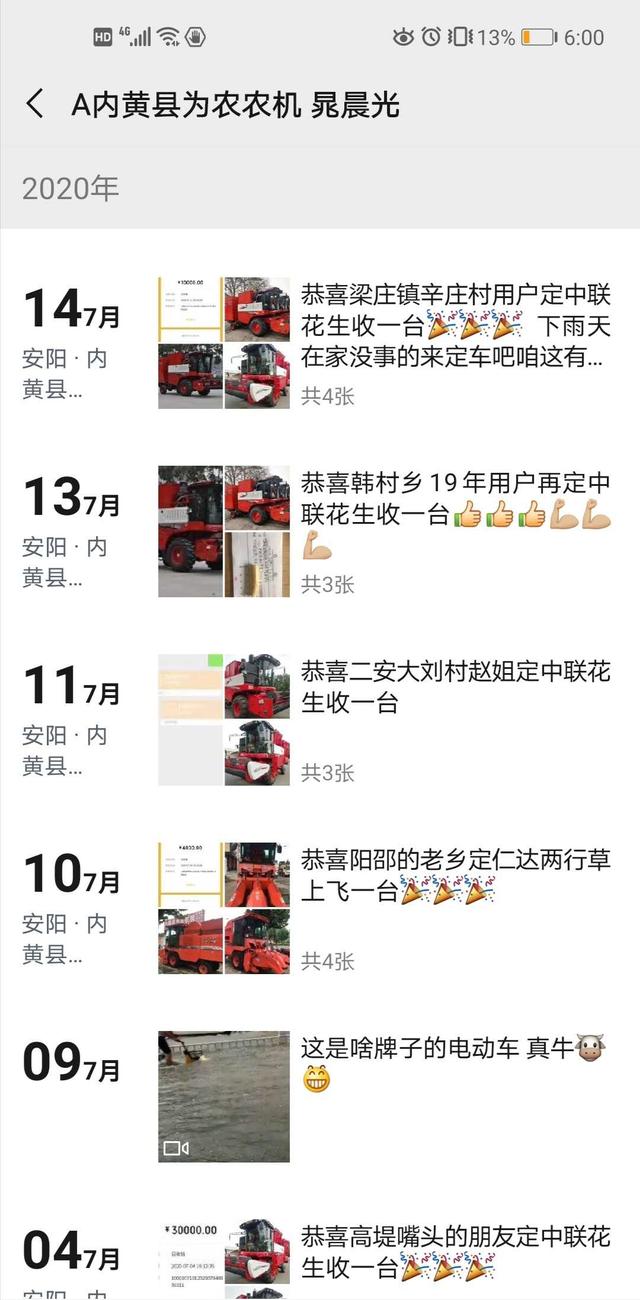 在鄭州中聯(lián)新款產(chǎn)品-自走花生收獲機(jī)投放市場(chǎng)前,年銷售額幾十萬的晁老板覺得自己代理之路越走越窄。2016年年末,鄭州中聯(lián)推出自走花生撿拾收獲機(jī),因農(nóng)機(jī)市場(chǎng)整機(jī)低迷,很多代理商面對(duì)新產(chǎn)品猶豫觀望。而晁老板憑借對(duì)鄭州中聯(lián)的信賴,押寶自走花生收。抓住“風(fēng)口”的晁老板,2017年銷售10多臺(tái)自走花生收,銷售額破百萬。隨著自走花生收獲機(jī)市場(chǎng)井噴,搶占先機(jī)的“為農(nóng)農(nóng)機(jī)”2018、2019年銷售額接連翻番!