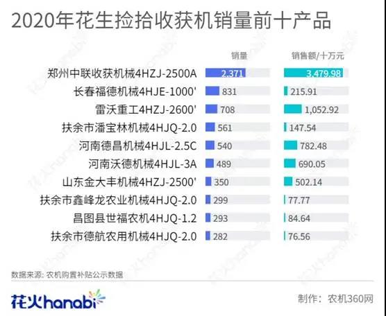 銷(xiāo)售額更高的產(chǎn)品是,鄭州中聯(lián)4HZJ-2500A型花生撿拾收獲機(jī),實(shí)現(xiàn)銷(xiāo)售近3.5億元,而大部分產(chǎn)品銷(xiāo)售額都不足8千萬(wàn)。