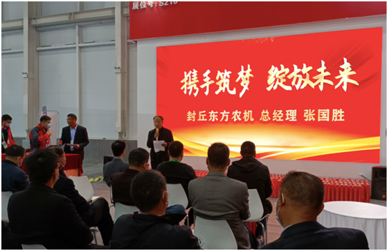 經銷商代表封丘東方農機總經理張國勝:“鄭州中聯對于我們的銷售支持力度大,比如鄭州中聯每年的線下用戶推介會和演示會對我們在新市場拓展,起到非常重要作用,同時在前端設置的配件庫也能很好的解決我們配件供應情況,讓我們在開拓新市場上毫無顧慮。”